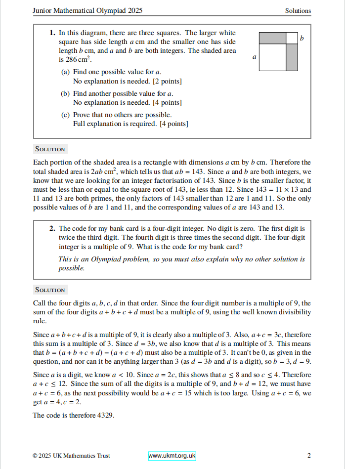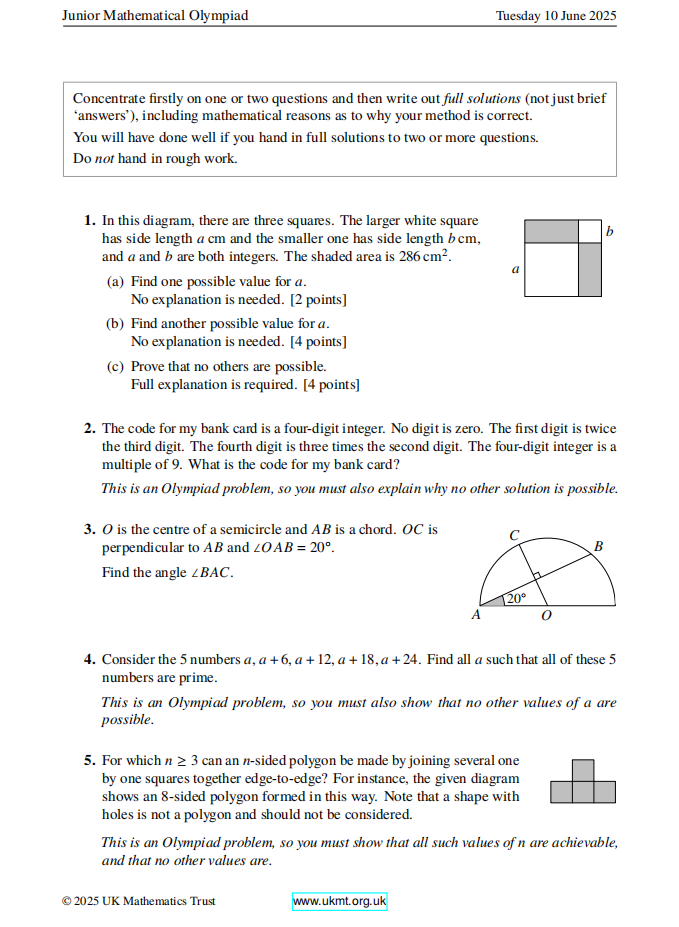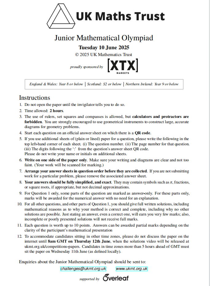 2025年UKMT-JMO竞赛真题+答案解析在线看!看你能得多少分? 2025年UKMT-JMO竞赛真题在线 2025年UKMT-JMO竞赛答案解析 完整版真题+答案解析扫码下载即可 还可以免费下载2010-2025 JMO竞赛完整版真题+答案解析⇓