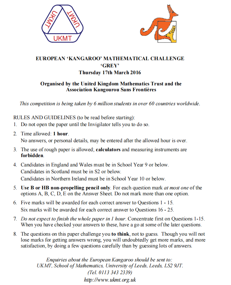 2016年UKMT灰袋鼠Grey竞赛真题在线做!看看能得多少分?