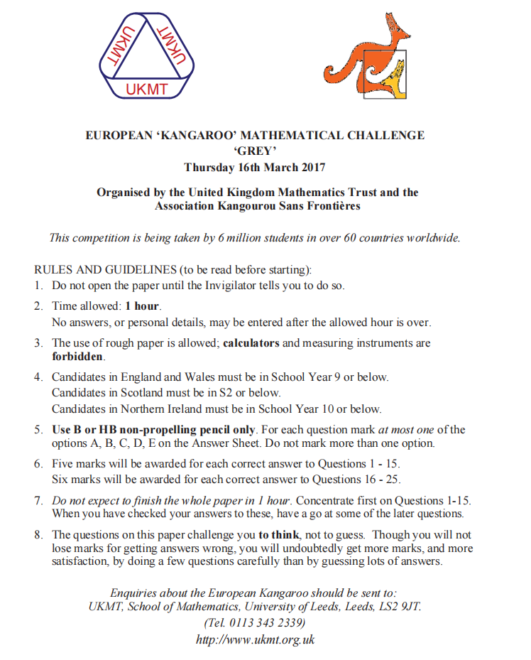 2017年UKMT灰袋鼠Grey竞赛真题在线做!看看能得多少分?