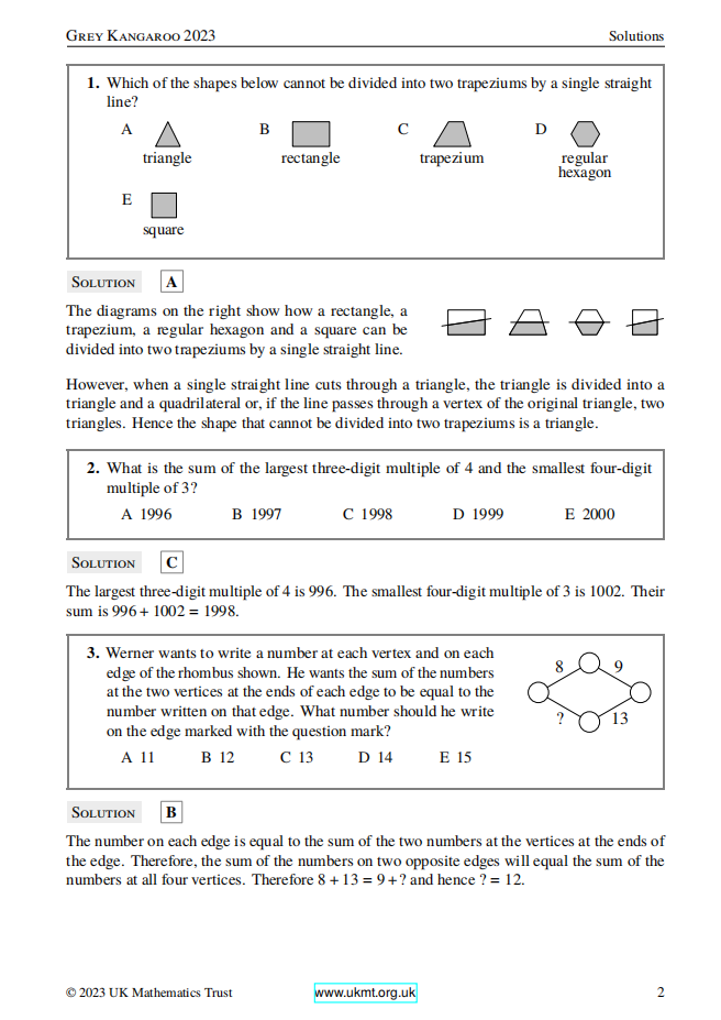 UKMT灰袋鼠Grey竞赛历年完整版真题+解析领取⇓