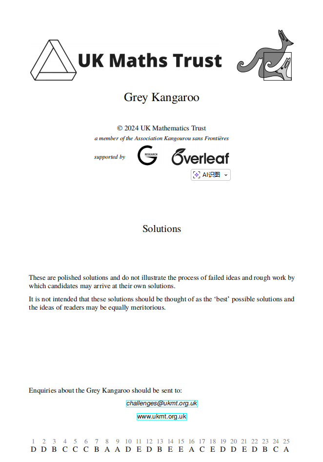 UKMT灰袋鼠Grey竞赛历年完整版真题+解析领取⇓