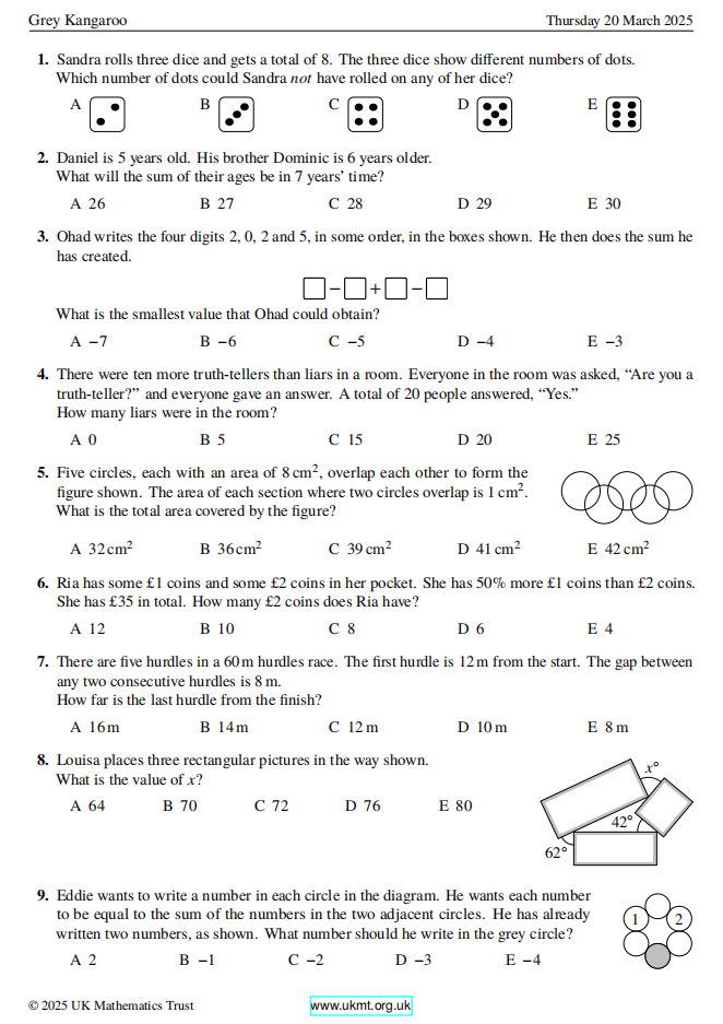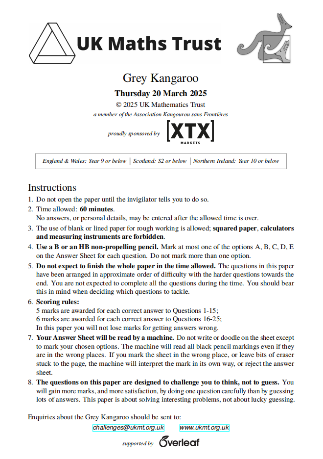2025年UKMT灰袋鼠Grey竞赛真题在线做!看看能得多少分?