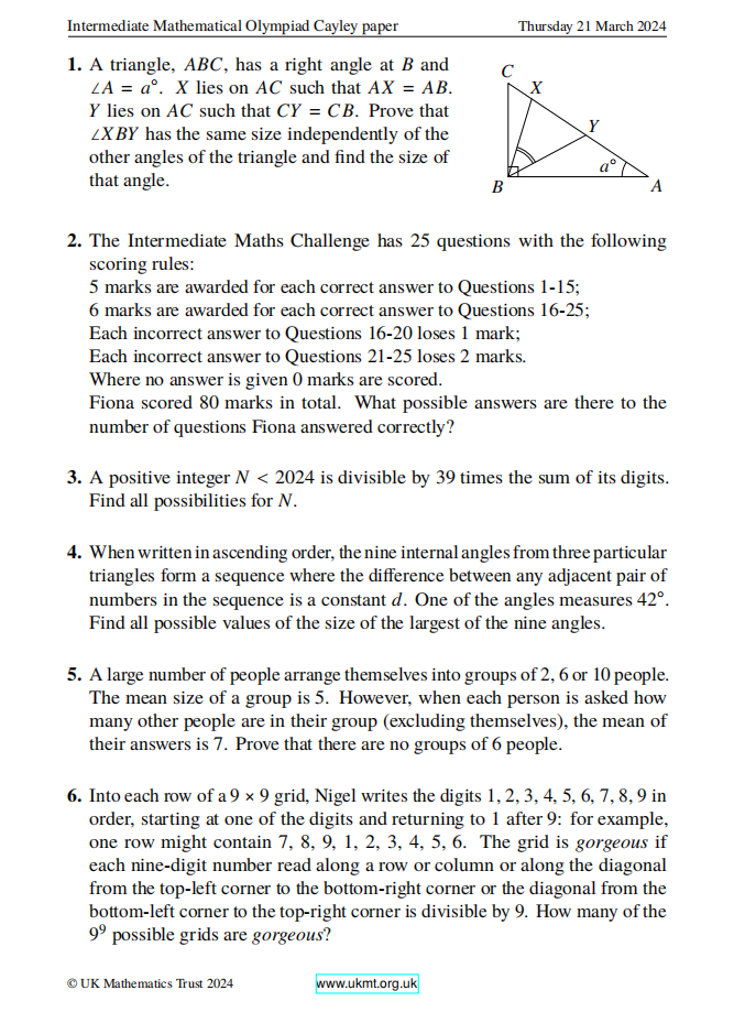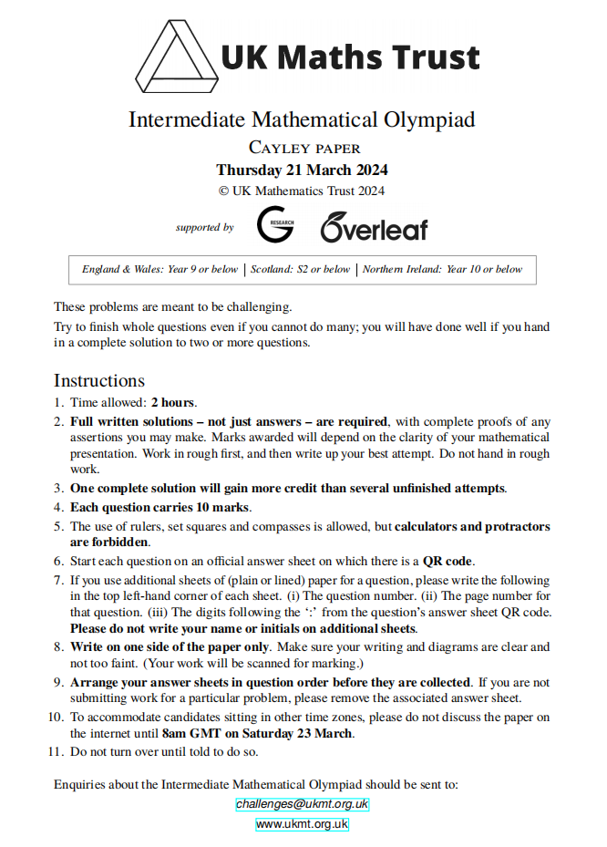 2024年UKMT-Cayley凯莱竞赛真题在线做!看看能得多少分?