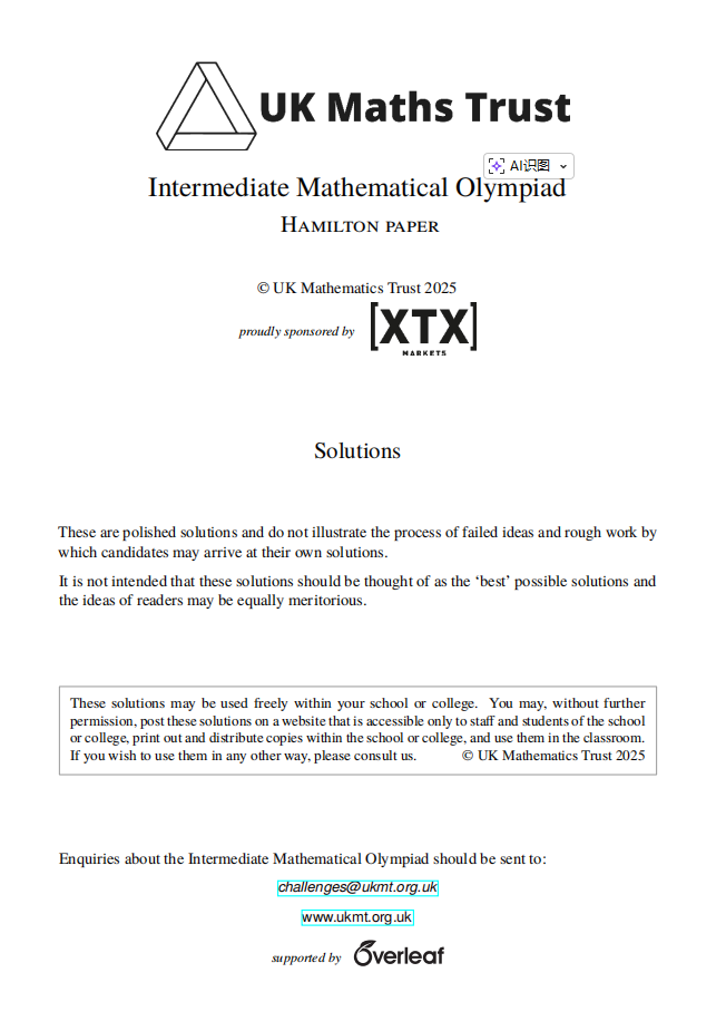 2025年IMOK Hamilton汉密斯顿竞赛真题在线看!看看能得多少分?